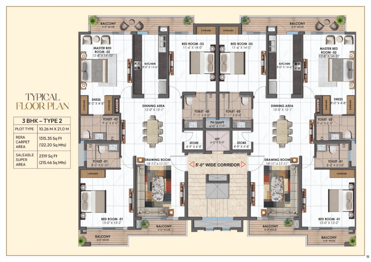 - Flooring: Vitrified Tiles (Up to 32” x 64”)
